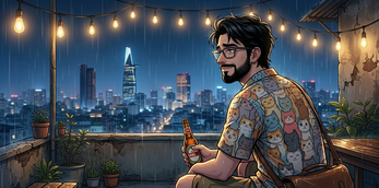 Now he's in Saigon. No plan. No clients. A $12 apartment with a gecko roommate, WiFi that's twice as fast as his Frankfurt flat, and a café run by a woman who thinks he's tolerable.